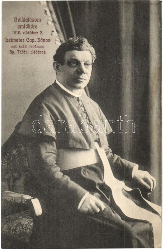 Description: 1910 Beiktatásom emlékére október 2-án. Leimeter Cap. János szt. széki tanácsos és Bp. Tabáni plébános / Hungarian parish priest and Holy See counsilor