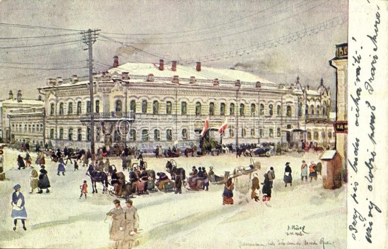 Description: 1920 Yekaterinburg, Ekaterinburg, Jekaterinbourg; Residence of the Czechoslovak's National Council Branch of Russia in winter. Pamatnik-Odboje, artist signed