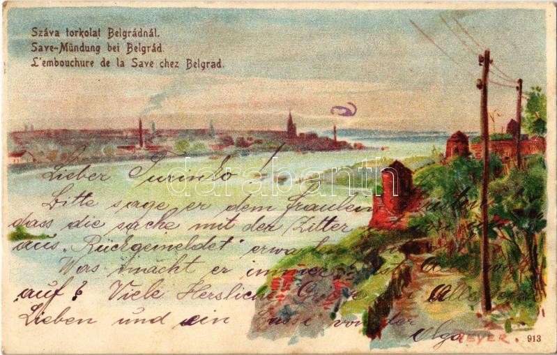 1903 Belgrade, Belgrád; Száva torkolata / Save Mündung / L'embouchure de la Save / Sava river mouth. litho s: Heyer