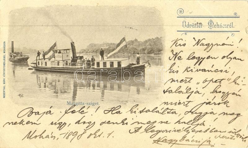 1898 (Vorläufer!) Mohács, MARGITTA SZIGET gőzüzemű csavaros személyhajó. Rosenthal Márk kiadása / Hungarian screw propelled passenger steamship (EK)