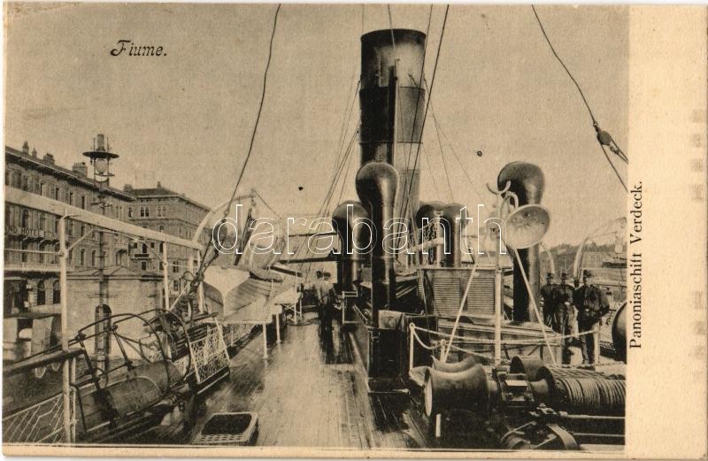 Pannónia kivándorlási hajó a fiume-i kikötőben, fedélzeti kép. Oldalt ... https://www.darabanth.com/en/32-Major-auction/32.1/Postcards/Ships~13796/Pannonia-kivandorlasi-hajo-a-fiume-i-kikotoben-fedelzeti-kep-Oldalt-az-Europa-szalloda-~II2033702