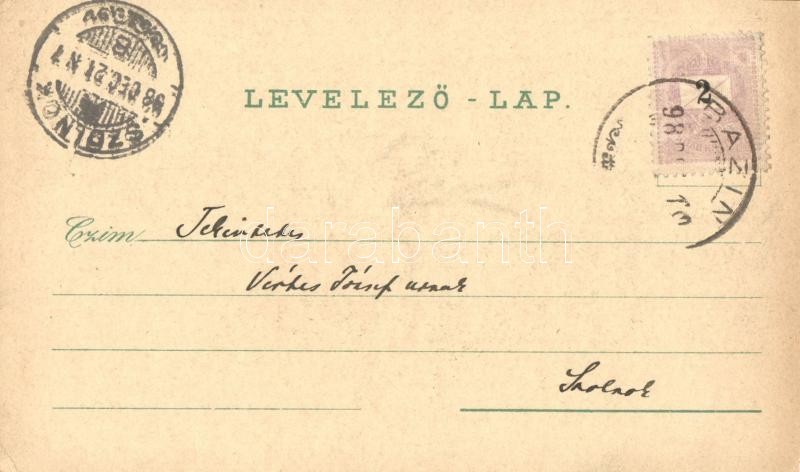 1898 (Vorläufer!) Bazin, Bösing, Bözing, Pezinok; Fő tér, Vasfürdő, templom / main square, church, spa. Schwidernoch Károly Art Nouveau, floral, litho (EK)