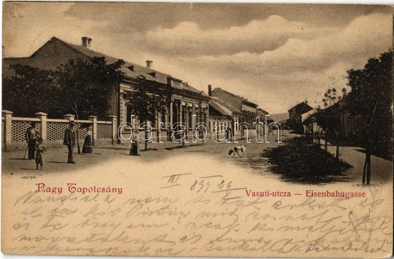 1899 Nagytapolcsány, Topolcany; Vasúti utca / Eisenbahngasse / street