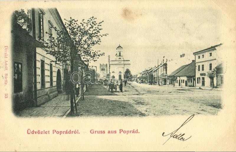 1899 Poprád, Fő utca, Csonka torony, templom. Divald Adolf 33. / main...