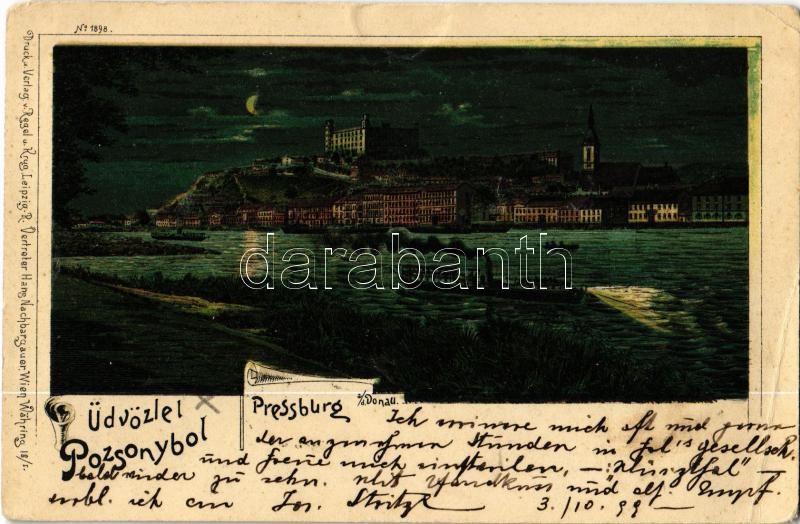 1899 Pozsony, Pressburg, Bratislava; este / night. Regel & Krug litho (EB)