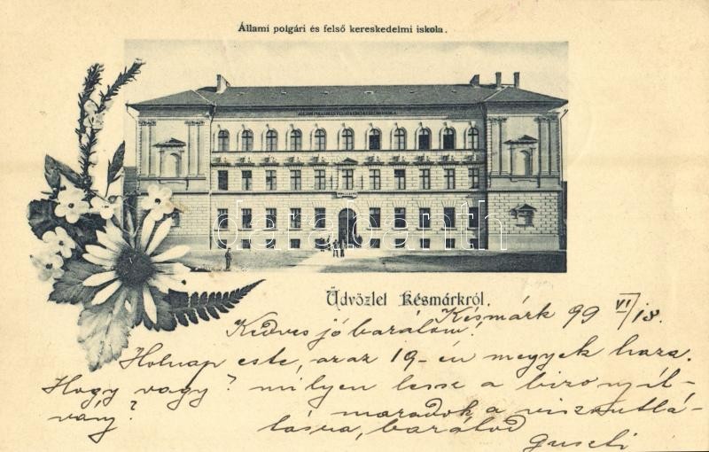 1899 (Vorläufer!) Késmárk, Kezmarok; Állami polgári és felső kereskedelmi iskola / school. Floral