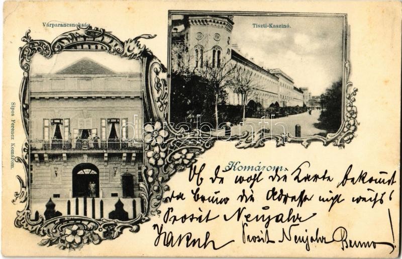 1900 Komárom, Komárnó; Várparancsnokság, Tiszti Kaszinó. Sipos Ferenc kiadása / castle headquarters, officers' casino. Art Nouveau, floral