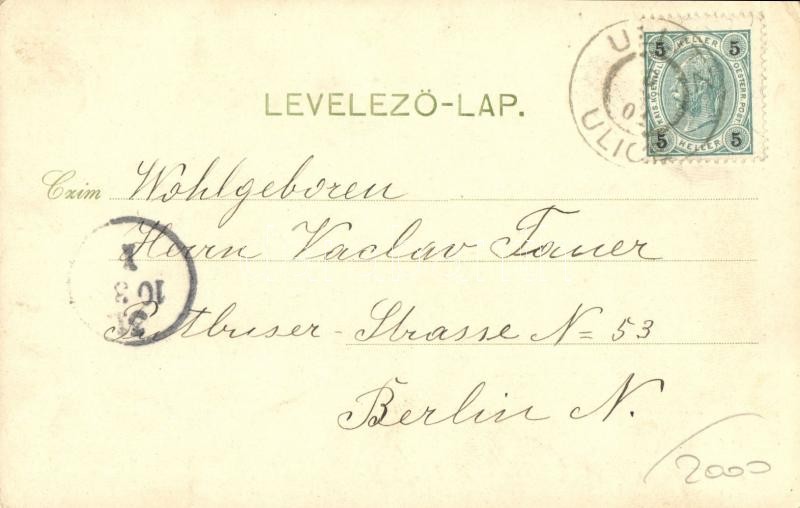 1901 Pozsony, Pressburg, Bratislava; Sétatér, Főtemplom, Városház, Színház / promenade, church, town hall, theatre. Kunstanstalt Rosenblatt Art Nouveau, floral, litho (EK)