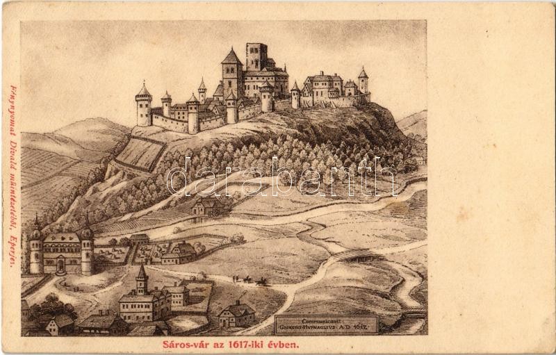 1902 Nagysáros, Velky Saris; Sáros vára az 1617. évben, Joris Hoefnagel metszete. Kiadja Divald Károly fia / Sarissky hrad / the castle in 1617