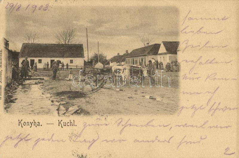 1903 Konyha, Kuchyna, Kuchel; Fő tér ökör szekerekkel. Wiesner Alfréd ...