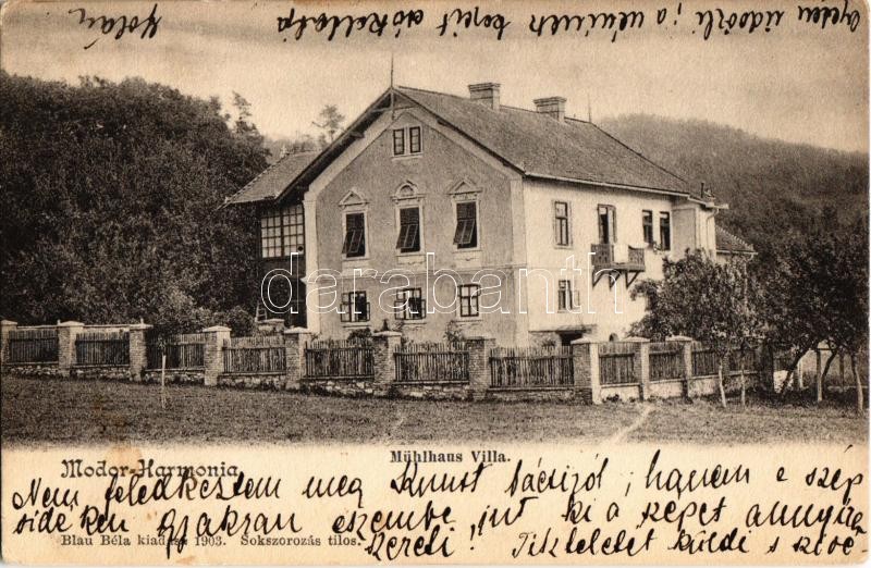 1903 Modor-Harmónia, Modor, Modra; Mühlhaus villa. Blau Béla kiadása / villa