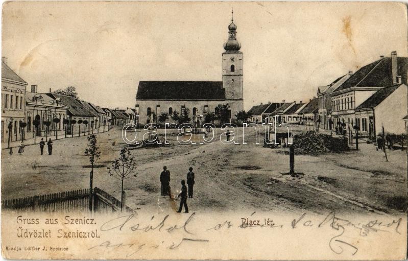1904 Szenice, Szenicz, Senitz, Senica nad Myjavou; Piac tér, templom. ...