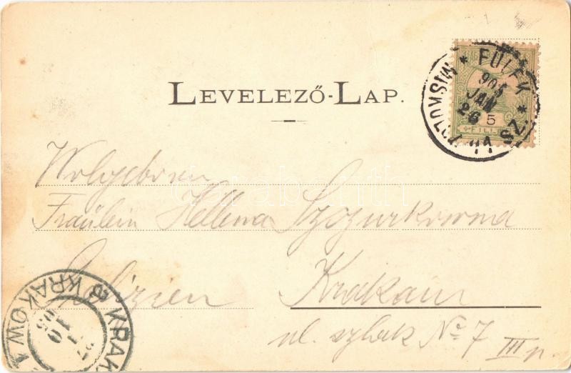 1905 Fülek, Filakovo; vasútállomás, gőzmozdony. Divald / railway station, locomotive + "MISKOLCZ-FÜLEK" mozgóposta (EK)
