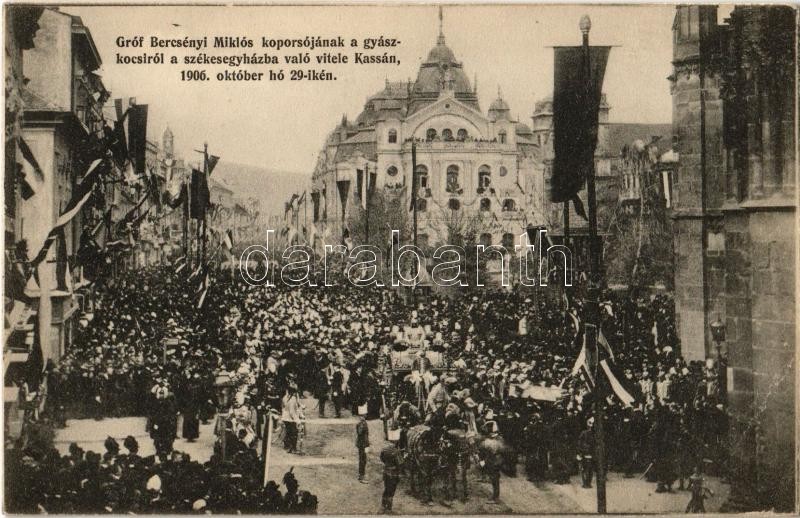 1906 Kassa, Kosice; Gróf Bercsényi Miklós koporsójának a gyászkocsiról... https://www.darabanth.com/en/32-Major-auction/32.1/Postcards/Slovakia~13727/1906-Kassa-Kosice-Grof-Bercsenyi-Miklos-koporsojanak-a-gyaszkocsirol-a-szekesegyhazba-val~II2035103