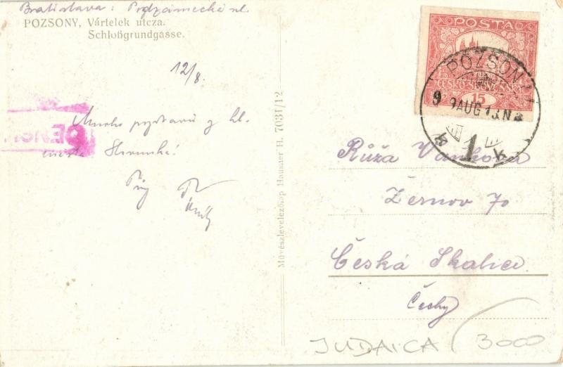 1909 Pozsony, Pressburg, Bratislava; Vártelek utca, zsidó negyed. Juda... https://www.darabanth.com/en/32-Major-auction/32.1/Postcards/Slovakia~13727/1909-Pozsony-Pressburg-Bratislava-Vartelek-utca-zsido-negyed-Judaika-Muveszlevelezolap-Ha~II2020186