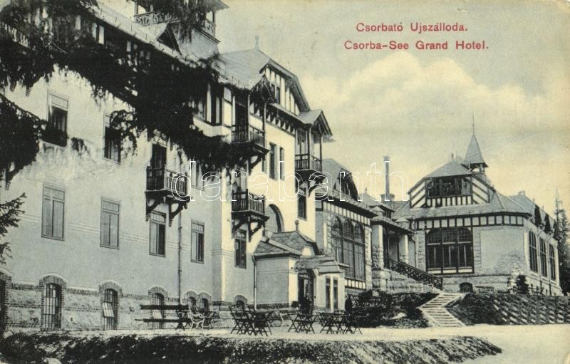 1912 Tátra, Vysoké Tatry; Csorbató Új szálloda. Quirsfeld János bazár kiadása / Strbské pleso, Grand Hotel (EK)