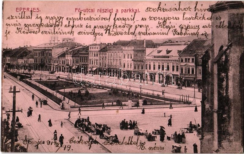 1914 Eperjes, Presov; Fő utca, park, üzletek, piac. Divald Károly fia ...