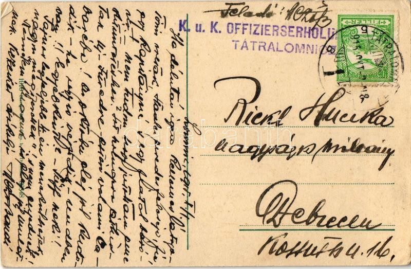 Description: 1915 Tátra, Vysoké Tatry; Ferenc József csúcs Tengerszem csúcsról tekintve / Stít Frantiska Jozefa / mountain peaks + "K.u.K. Offizierserholung Tátralomnicz" (EK)