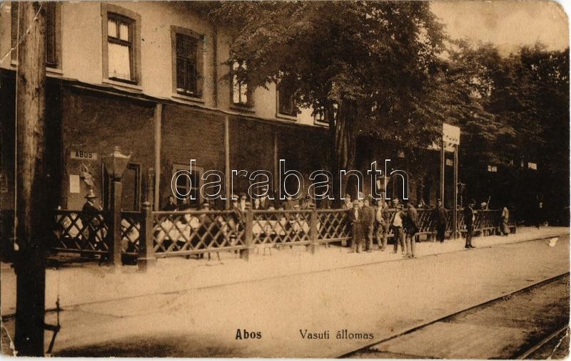 1917 Abos, Obisovce; vasútállomás, étterem terasza / Bahnhof / railway station, restaurant terrace (EM)