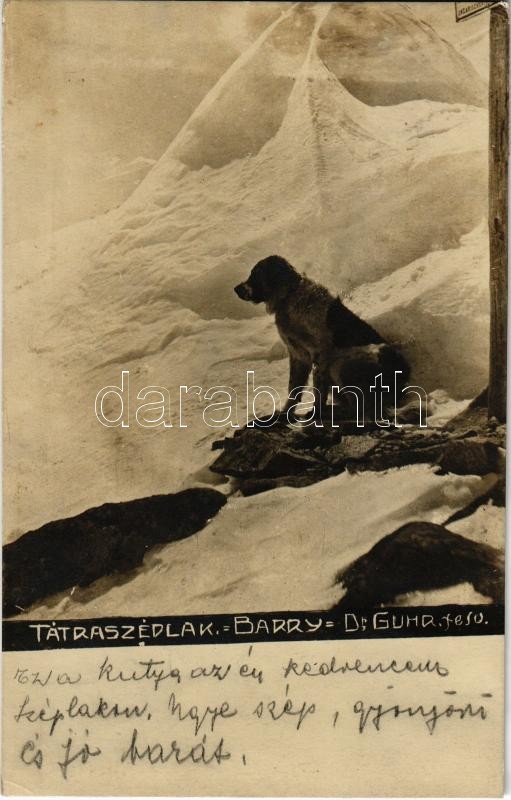 Description: 1917 Tátraszéplak, Tatranska Polianka, Westerheim (Magas-Tátra, Vysoké Tatry); Barry, a bernáthegyi kutya télen. Dr. Guhr felvétele / St. Bernard dog in winter. photo