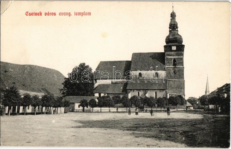 Csetnek, Stítnik; Evangélikus templom, tér. Csernok Rezső kiadása / ch...