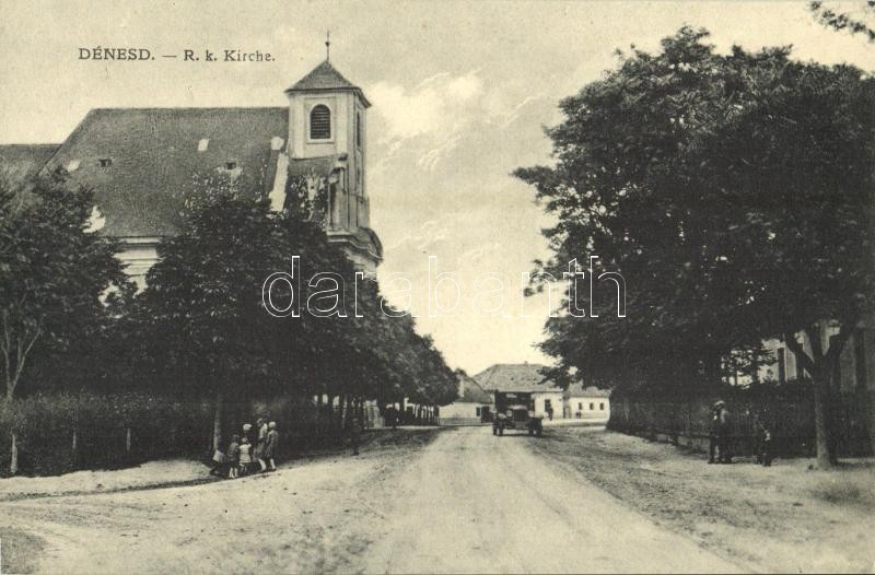 Dénesd, Schildern, Jánosíková; Fő utca, Római katolikus templom, autó ...