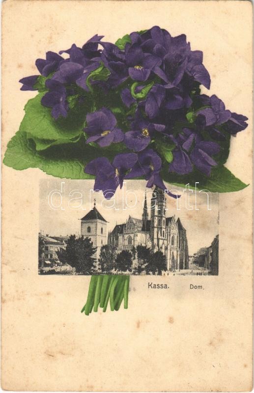 Kassa, Kosice; dóm. Ibolyacsokor montázs. Varga Bertalan kiadása / dome. montage with violet bouquet (Rb)