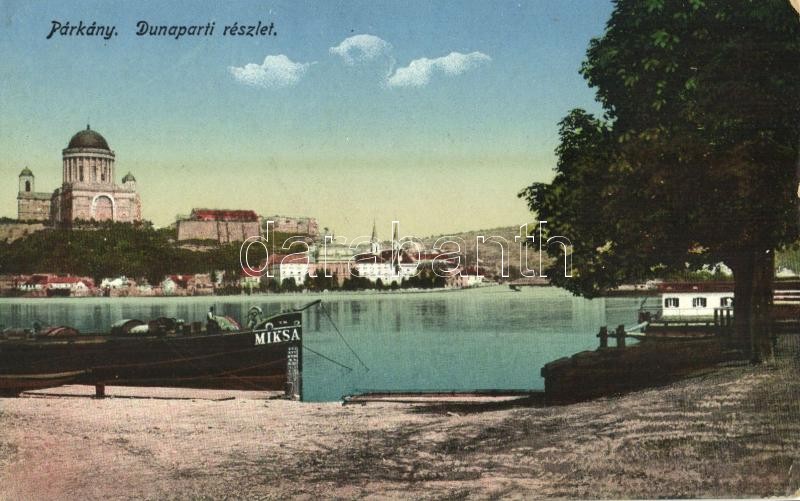 Párkány, Stúrovo; Duna part, Esztergomi bazilika, "Miksa" uszály / Danube riverbank, basilica, barge (EK)