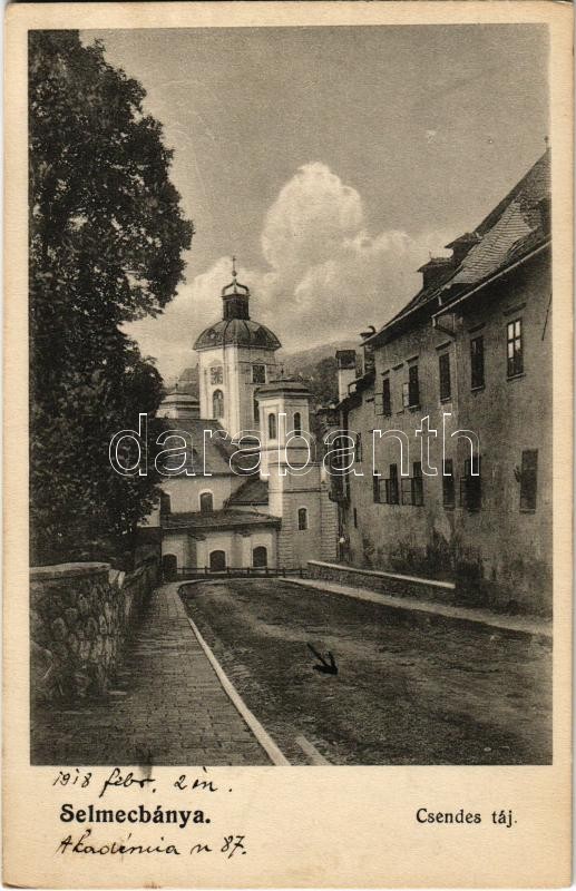 Selmecbánya, Schemnitz, Banská Stiavnica; Csendes táj, utca és német t...