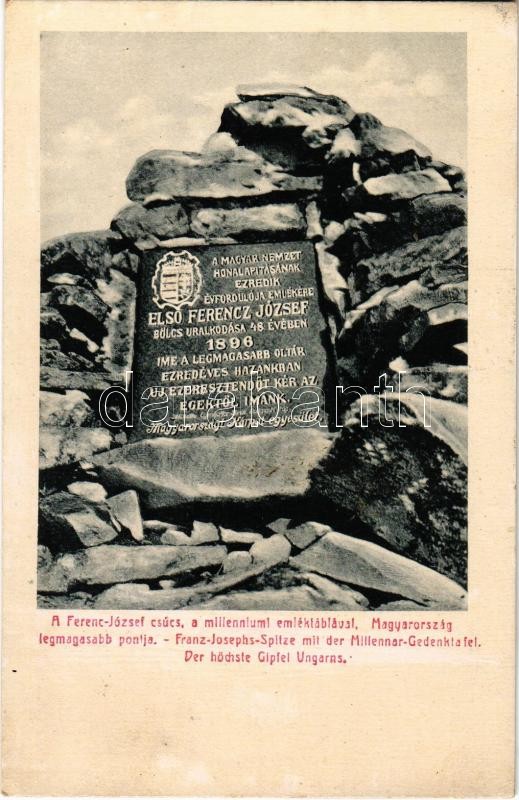 Tátra, Magas Tátra, Vysoké Tatry; Ferenc József csúcs a millenniumi em... https://www.darabanth.com/en/32-Major-auction/32.1/Postcards/Slovakia~13727/Tatra-Magas-Tatra-Vysoke-Tatry-Ferenc-Jozsef-csucs-a-millenniumi-emlektablaval-Magyarors~II2035082