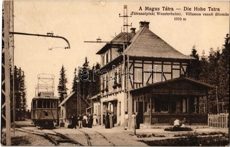 Tátraszéplak, Tatranska Polianka, Westerheim (Magas-Tátra, Vysoké Tatry); Villamos vasúti állomás Poprád felé / tramway station with tram