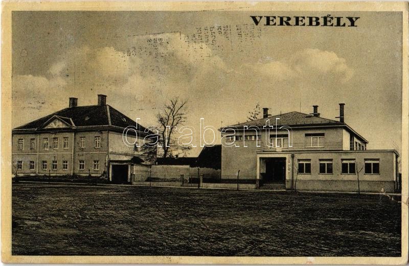 Verebély, Vráble; Járásbíróság, Pénzügyi hivatal / Okresny súd a fin. úrad / county court, financial office (szakadás / tear)