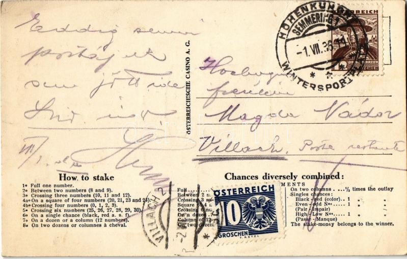 1936 La Roulette / Roulette game. How to stake? (EK)