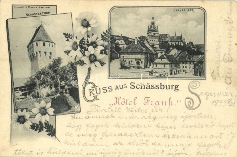 1899 (Vorläufer!) Segesvár, Schässburg, Sighisoara; Piac tér, Cipészek bástyája. Fritz Teutsch / Schusterturm, Marktplatz / tower, market square. Floral