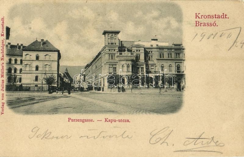 1901 Brassó, Kronstadt, Brasov; Kapu utca / Purzengasse. Julius Müller...