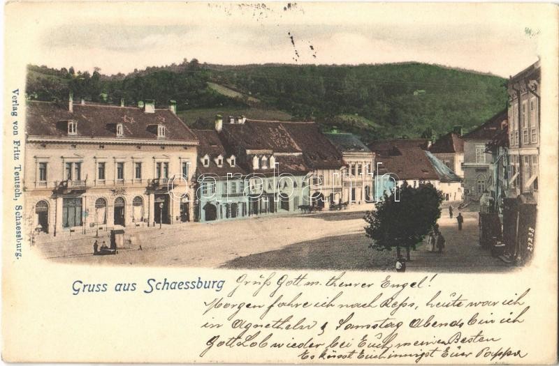 1901 Segesvár, Schassburg, Sighisoara; utca, üzletek. Fritz Teutsch ki...