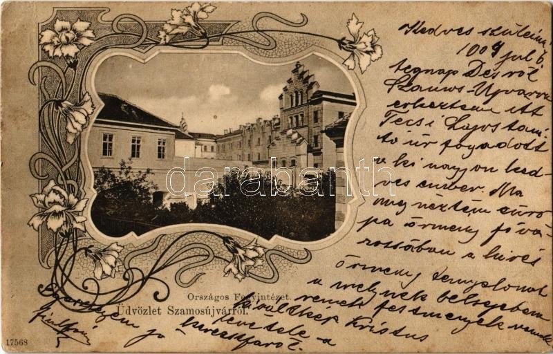 1904 Szamosújvár, Gherla; Országos fegyintézet, börtön / prison. Art Nouveau, floral (EK)