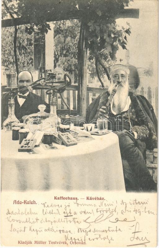 1905 Ada Kaleh, Kávéház, Bego Mustafa. Müller Testvérek kiadása / Kaff...