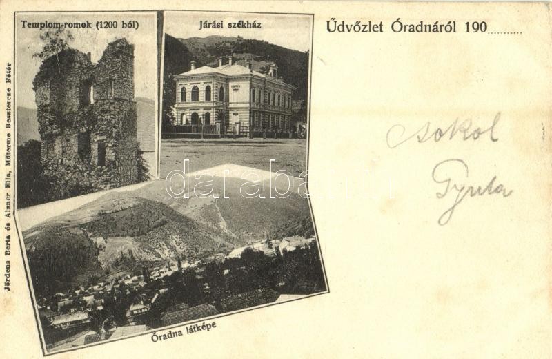 1906 Óradna, Radna, Rodna Veche; Templom rokok 1200-ból, járási székház. Jördens Berta és Aizner Ella kiadása / church ruins, county hall