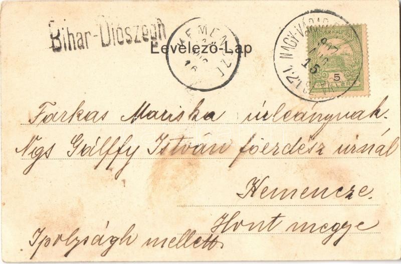 1907 Bihardiószeg, Diosig; Gróf Zichy féle kastély, református templom...