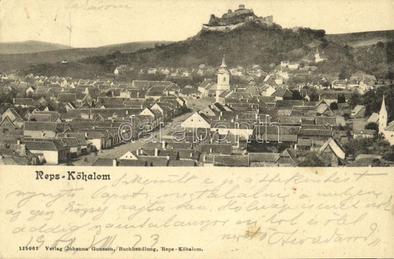 1908 Kőhalom, Reps, Rupea; látkép a templommal és várral, Fő utca / ma...