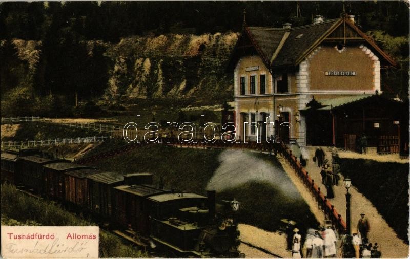 https://www.darabanth.com/en/32-Major-auction/32.1/Postcards/Transylvania~13726/1908-Tusnadfurdo-Baile-Tusnad-vasutallomas-gozmozdonnyal-Adler-Alfred-Bahnhof-Gara-~II1955124