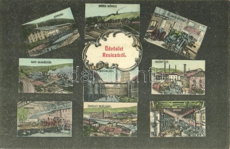 1911 Resica, Resita; Gépgyár, kovács műhely, villamos központ, vasöntöde, nagyolvasztók, hengermű, Martinplateo, belső / iron works, machine factory interior. Art Nouveau
