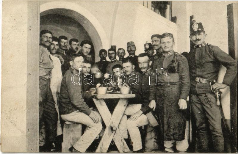 1912 Arad, katonák étkezés közben a laktanyában. Hirschl és Heimann ki...