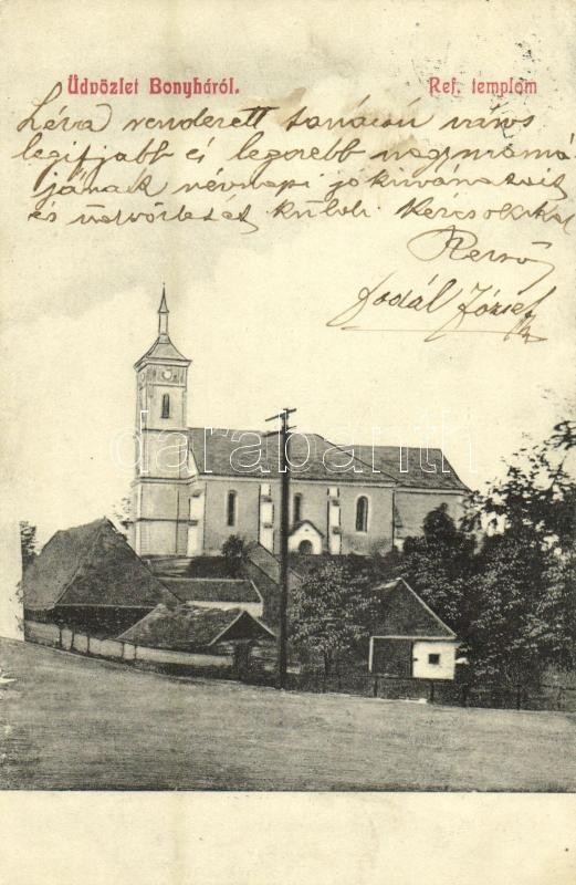 1913 Bonyha, Szászbonyha, Bahnea; Református templom / Calvinist church