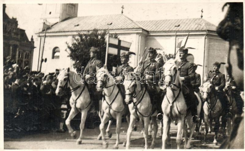 1940 Nagyvárad, Oradea; bevonulás darutollas tisztekkel / entry of the Hungarian troops, crane feathered officers. Original photo (EK)