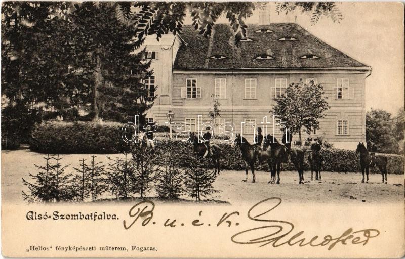 Alsószombatfalva, Sambata de Jos; Brukenthal-kastély lovasokkal. Helios fényképészeti műterem / castle with horsemen