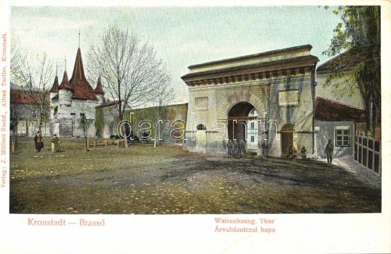 Brassó, Kronstadt, Brasov; Árvaház utcai kapu. J. Müller, Alfred Tartl...