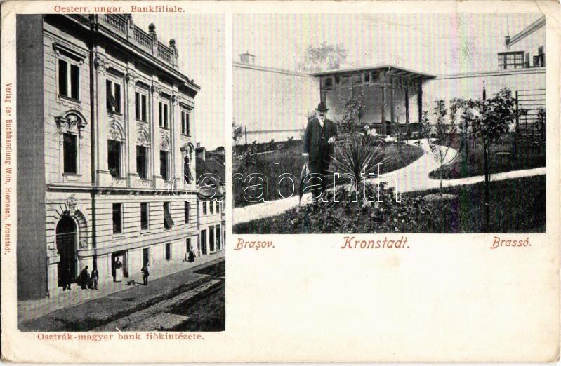 Brassó, Kronstadt, Brasov; Osztrák-magyar bank fiókintézete, park és p...