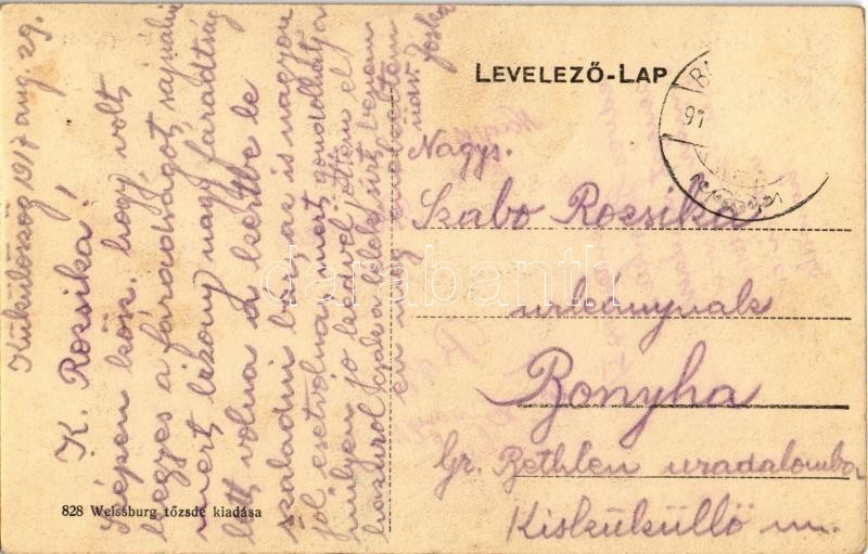 Description: Dicsőszentmárton, Tarnaveni, Diciosanmartin; Erzsébet út, piac árusokkal, Fülöp Jenő üzlete, félkész háztető. Weissburg tőzsde kiadása / street view with market, shop, unfinished roof